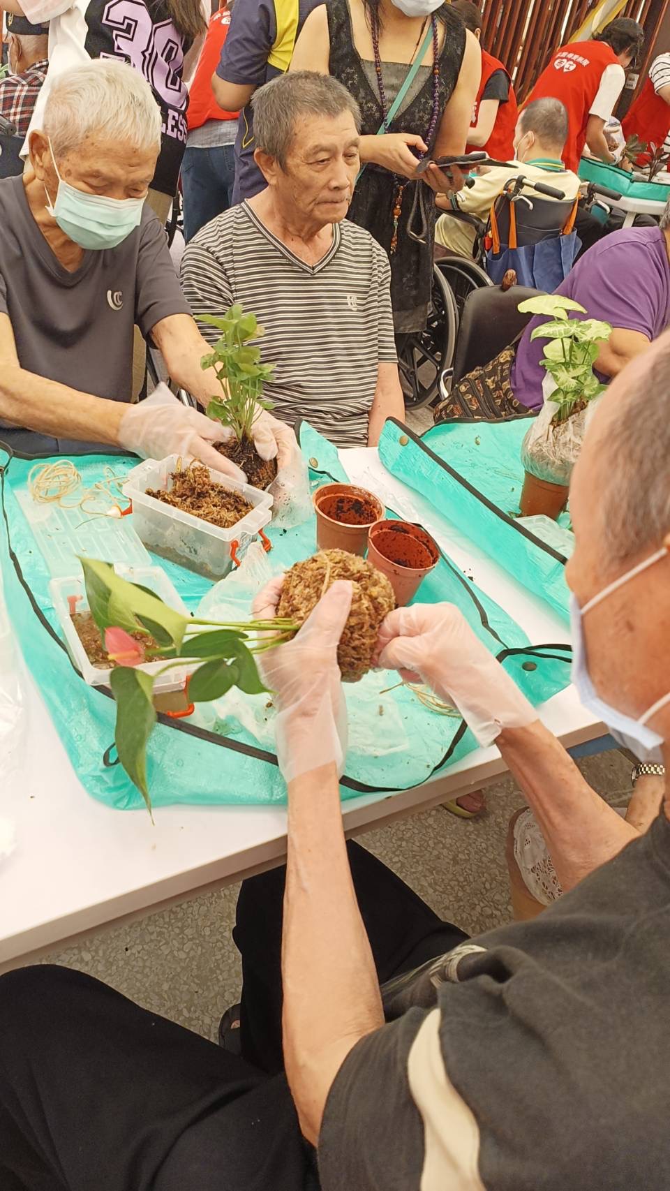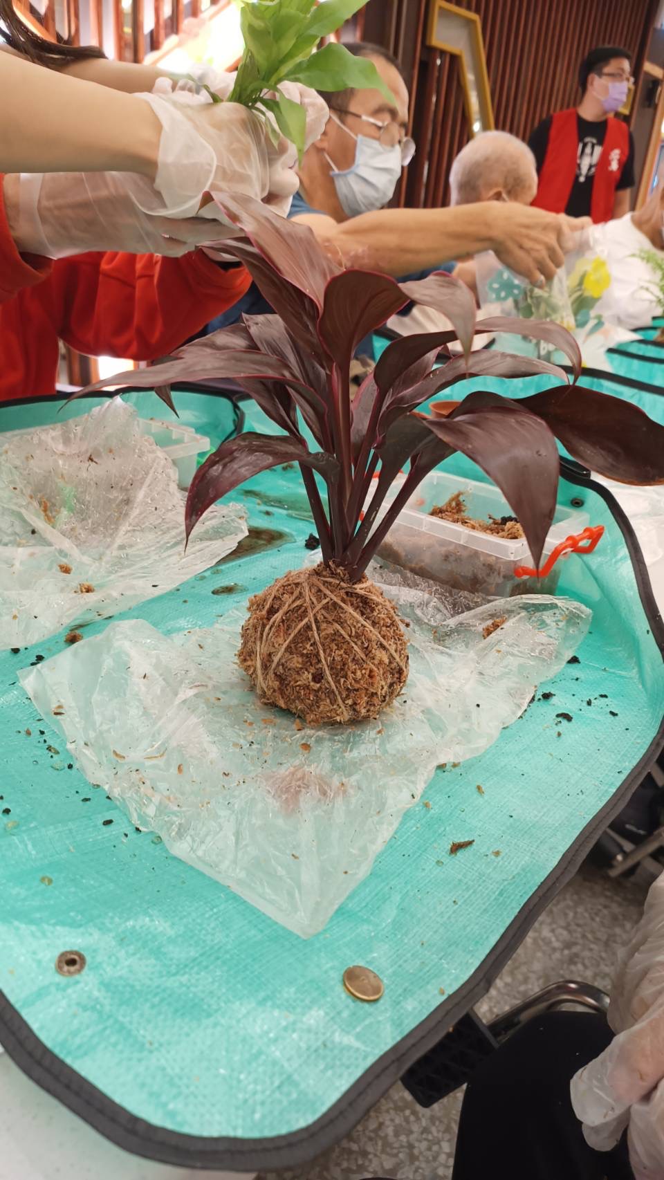 在專業老師的引導下,長輩們動手捏土、塑型、纏繩,將小小的植栽苔球打造成獨一無二的綠色作品。這不僅能活絡手部肌肉,更讓大家在專注與創作的過程中享受療癒與成就感。現場伴隨著笑聲與交流,氛圍溫馨而熱絡。