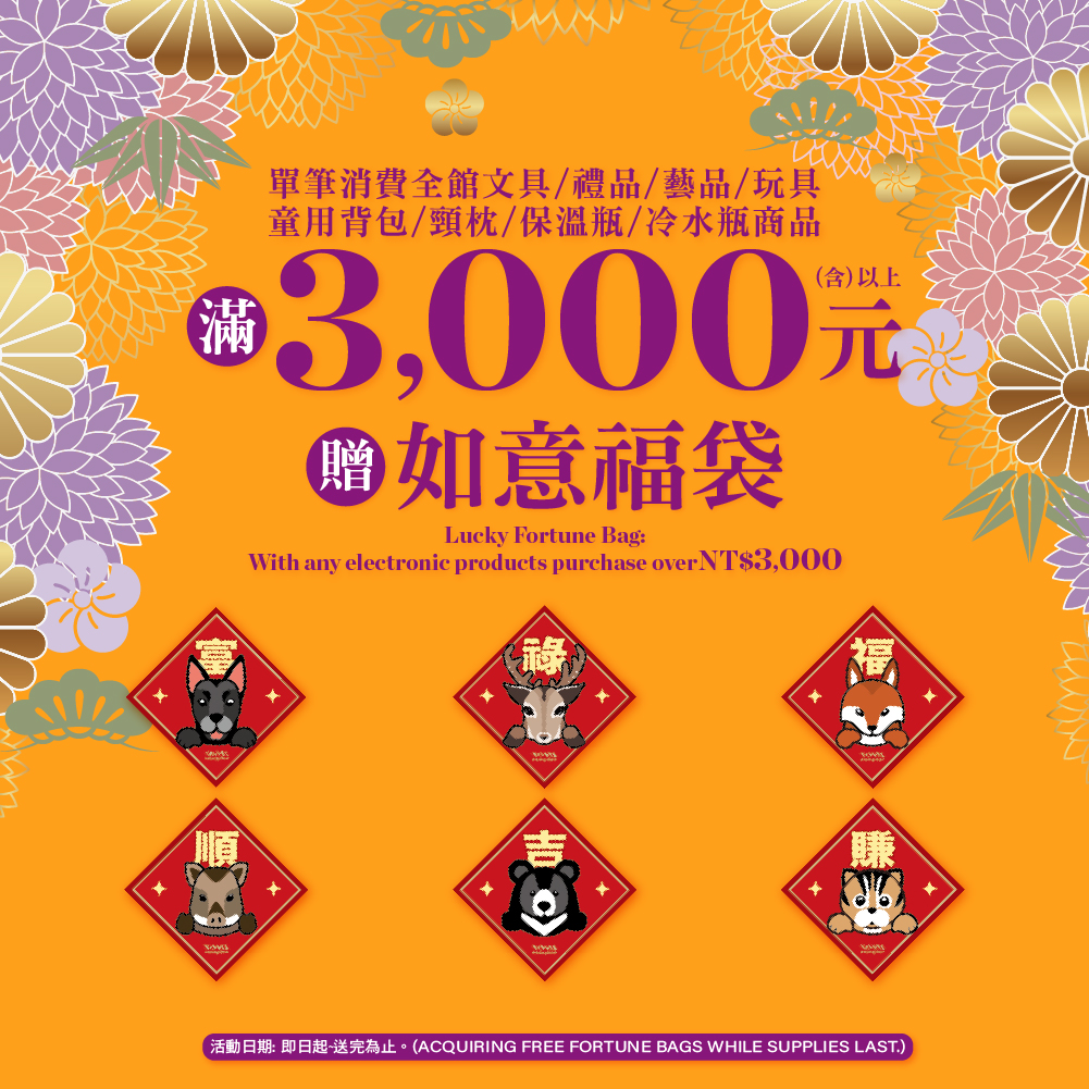 滿NT$3,000(含)以上,即贈 如意福袋x1