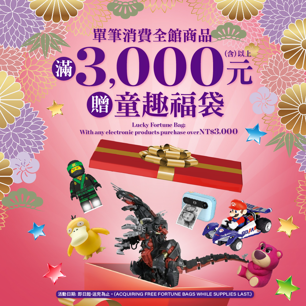 滿NT$25,000(含)以上,即贈 3C吉祥福袋x1
