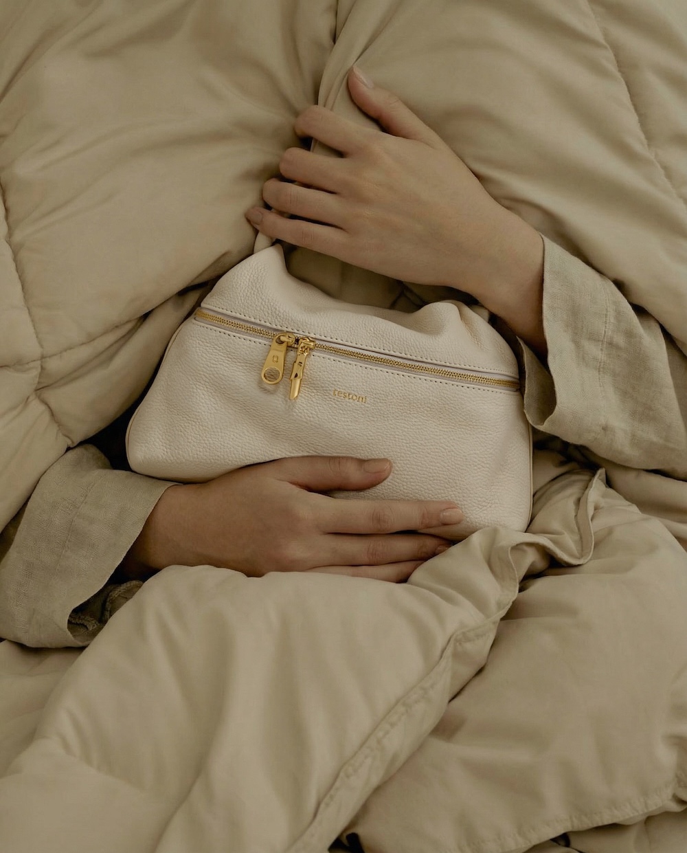 Testoni包款延續同樣的柔軟理念,以細緻皮革打造輕盈且富有立體感的輪廓。