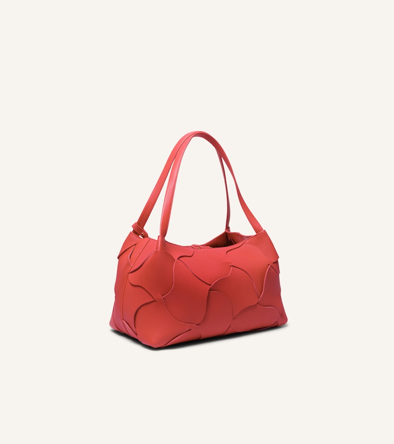 Testoni Enzo 托特編織包,亮眼的虞美人紅為春夏裝扮注入飽滿的能量與藝術氣息。