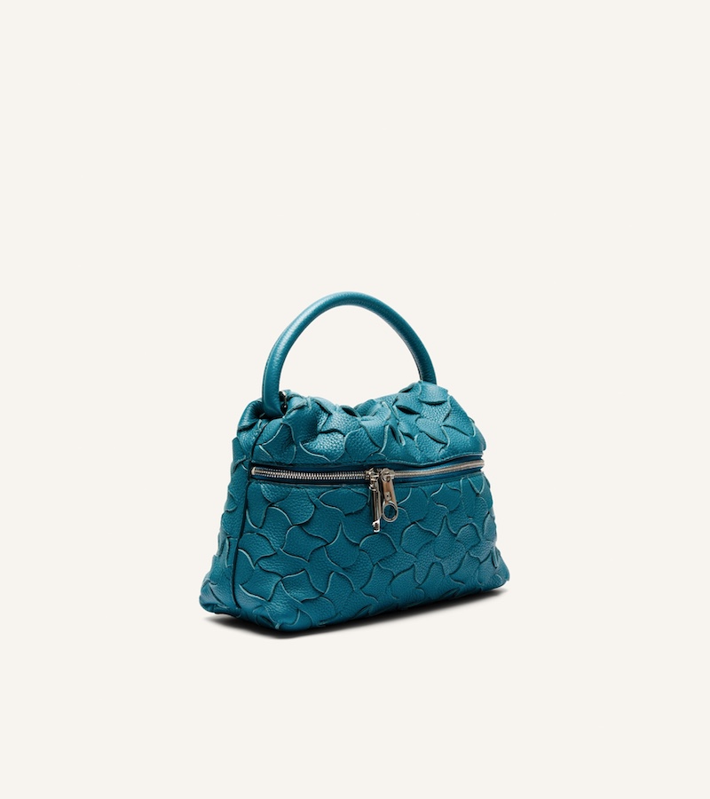 Intreccio 曲線編織設計的靈魂,源於創辦人之女 Marisa Testoni 對家族後院樹皮自然曲線的細膩洞察。工匠將高級皮革精準裁切為如河流般的曲線細條,再透過全手工編織,將樹皮獨特的層次波浪紋理具象化,讓包款散發出流動的生命力。